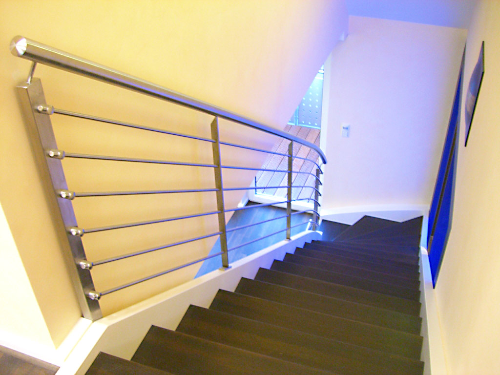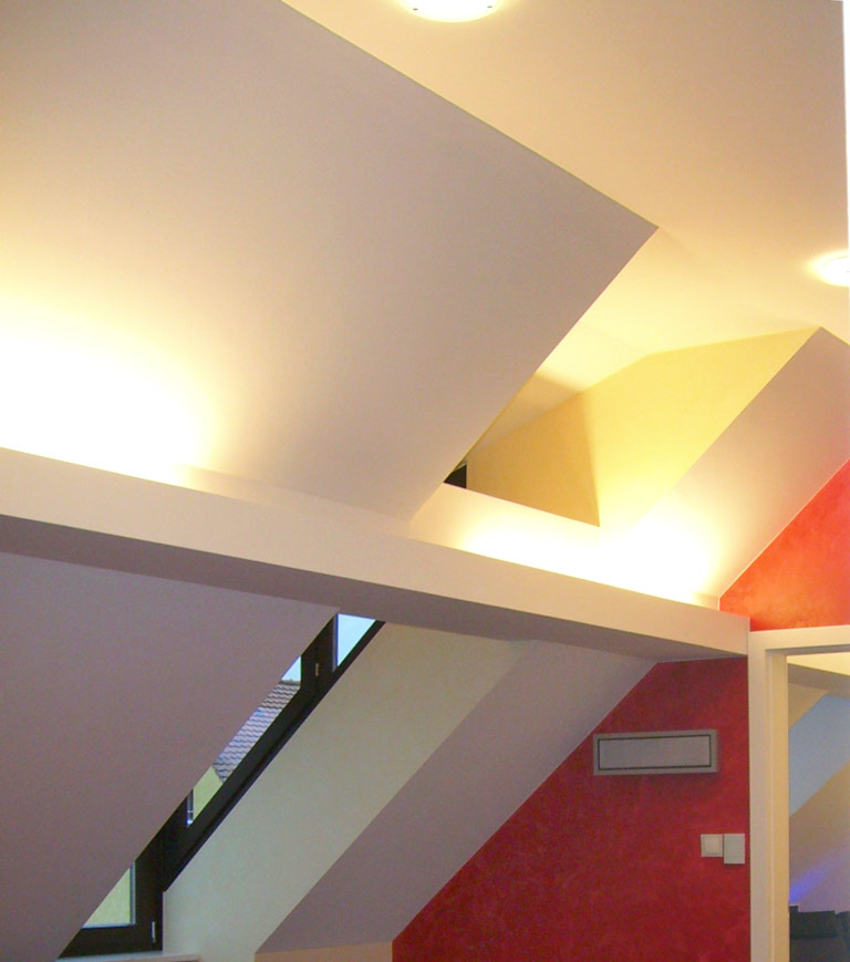 Der Wunsch unseres Kunden war ein studioähnlicher Ausbau des Dachgeschosses in seinem Wohnhaus. Besonders wichtig war ihm, eine architektonisch stimmige und optisch ansprechende Lösung für den Treppenaufgang und die Ausgestaltung des Geschosses zu finden.