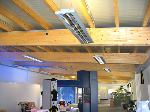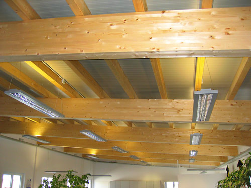 Gewerberäume Date: Dienstag, 24 September 2013 Info: Balkenkonstruktion Raumdecke mit sichtbaren Balken, Fassadenbekleidung Nach oben