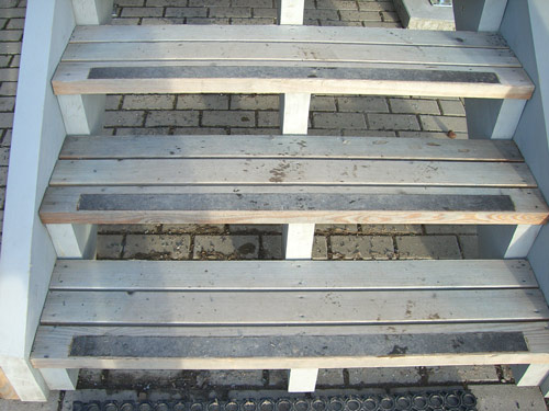 Wichtig war, dass die Neigung nicht zu steil ist. Zudem wurde durch die neue Eingangssituation eine neue Außentreppe notwendig. Auch diese führten wir als zimmermannsmäßige Holzkonsruktion aus.