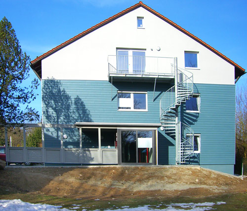Fassadenbekleidung und Windschutz an einem Mehrfamilienhaus in Windischeschenbach.
